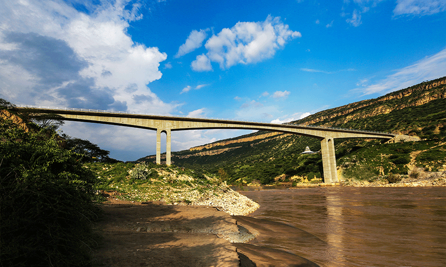 尼羅河大橋項(xiàng)目位于埃塞俄比亞阿姆哈拉州,為KOMBOLCHA—GUNDEWEIN公路第二標(biāo)段中的重要分項(xiàng)工程。大橋橫跨藍(lán)尼羅河,是埃塞俄比亞第一座預(yù)應(yīng)力混凝土連續(xù)剛構(gòu)橋,橋梁全長(zhǎng)為294.2米,寬度10.6米。