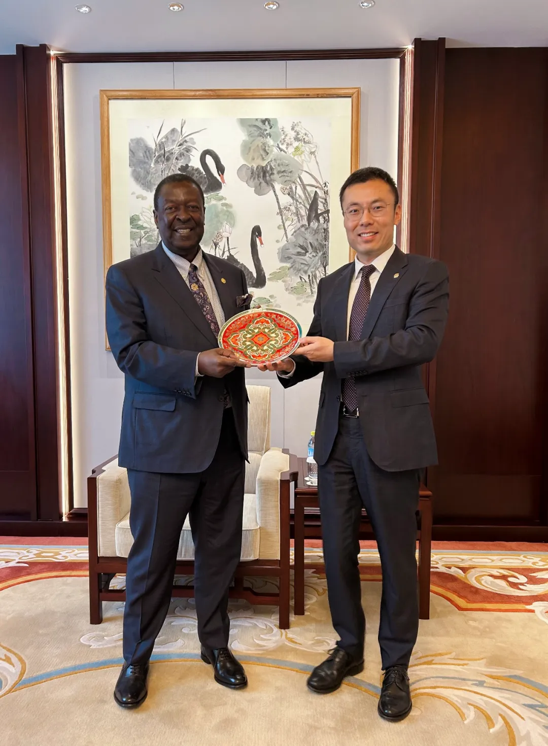 高磊向穆介紹了中地海外公司多年來扎根非洲的發(fā)展歷史,以及在基礎(chǔ)設(shè)施建設(shè)項(xiàng)目中積累的豐富經(jīng)驗(yàn),表示公司愿深耕肯尼亞市場,積極跟蹤、推進(jìn)相關(guān)項(xiàng)目。穆對公司在非業(yè)務(wù)開展表示高度認(rèn)可,強(qiáng)調(diào)肯高度重視城市清潔供水建設(shè),歡迎中地海外充分發(fā)揮自身優(yōu)勢,與肯相關(guān)部門緊密合作,探討水務(wù)及其他領(lǐng)域合作項(xiàng)目。