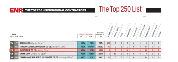 2025年度《美國工程新聞紀錄(ENR)》全球最大250家國際承包商榜單節選