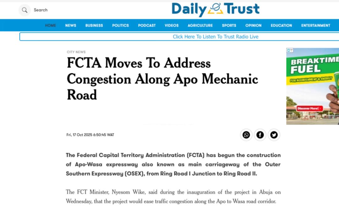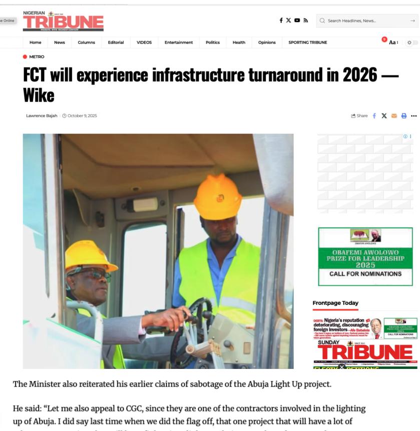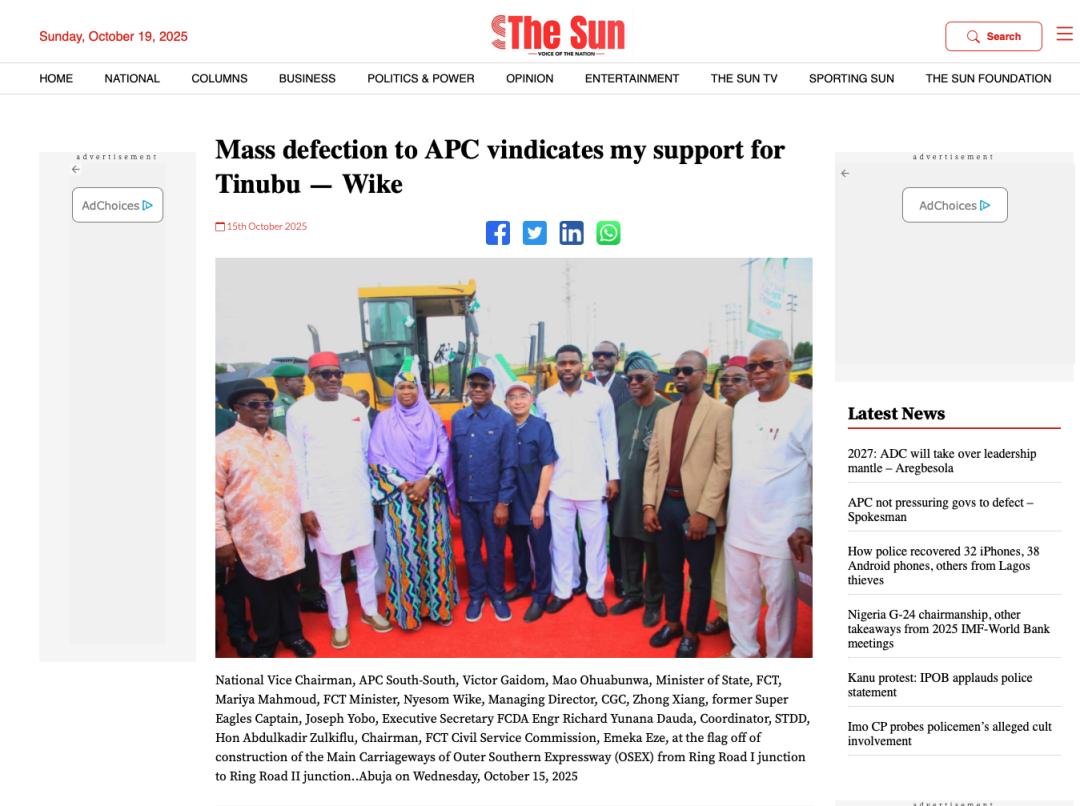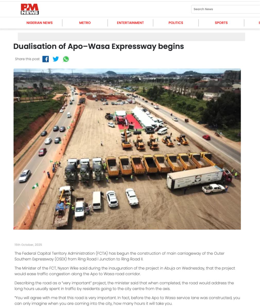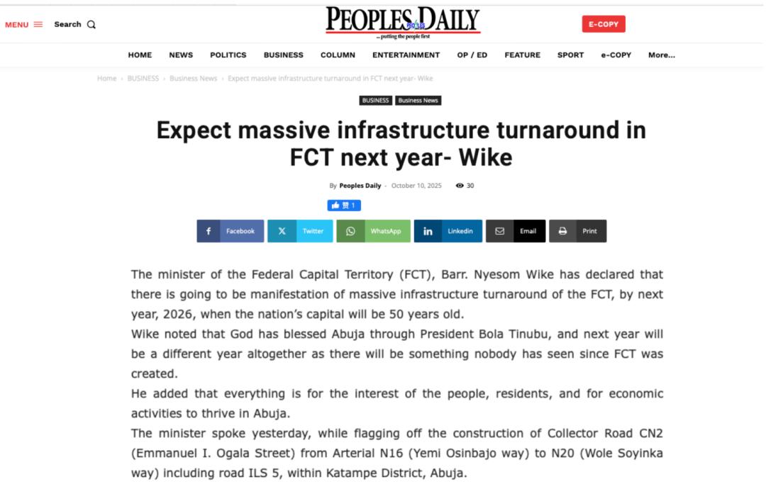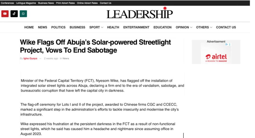 近期,尼日利亞《太陽報》(The Sun Nigeria)、《先鋒報》(Vanguard)、《論壇報》(Nigerian Tribune)、TVC新聞、新聞中心電視臺等主流媒體持續(xù)關注中地海外在尼開工的重點工程,通過專題報道、現場采訪等形式,深度解析項目對當地經濟、民生及基礎設施升級的推動作用。讓我們一起來回顧吧!
