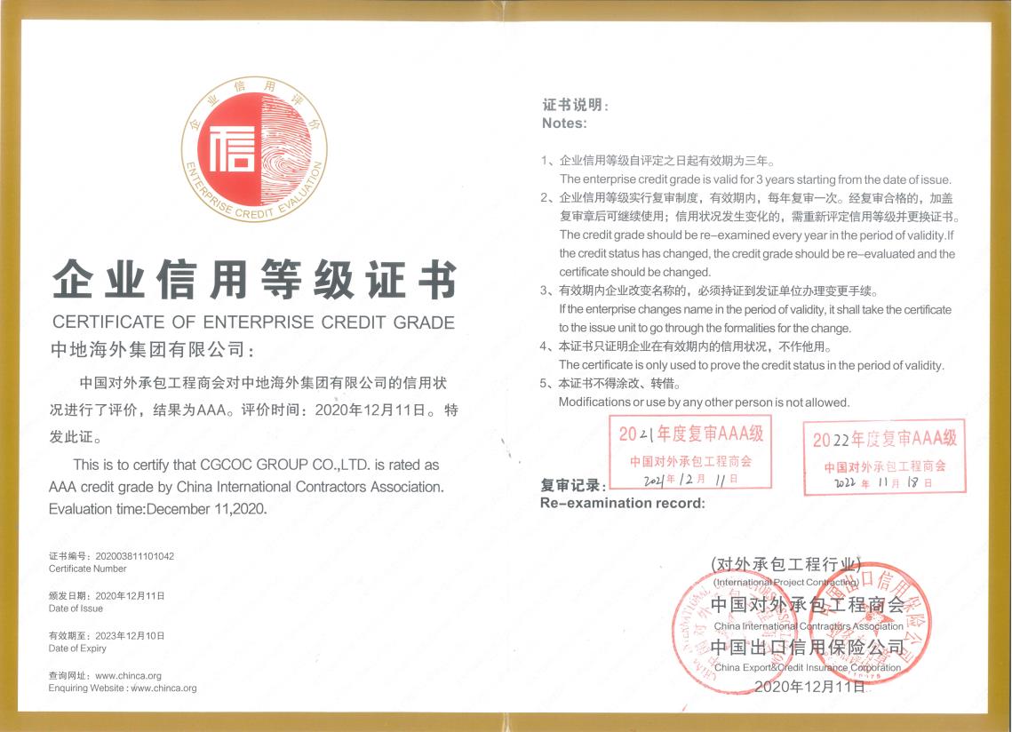 公司連續19年入圍ENR“全球250強國際承包商”榜單,先后榮獲商務部中國外經50強企業、中國對外承包工程百強企業、A級企業、AAA級信用企業、社會責任領先型企業等多項榮譽,多次當選中國對外工程承包商會,尼日利亞、埃塞俄比亞、塞內加爾、喀麥隆等國中資企業商會會長、副會長單位。公司實施的塞內加爾打井供水、喀麥隆杜阿拉城市供水、埃塞-吉布提跨境供水、布基納法水稻增產等項目,先后入選《十大“一帶一路”工程》《中國境外可持續基礎設施項目》《推動項目可持續發展,共建高質量一帶一路,實現聯合國可持續發展目標企業實踐案例》《“百企千村”國企力量》藍皮書,被包括新華社、央視在內的國內外主流媒體廣泛報道。