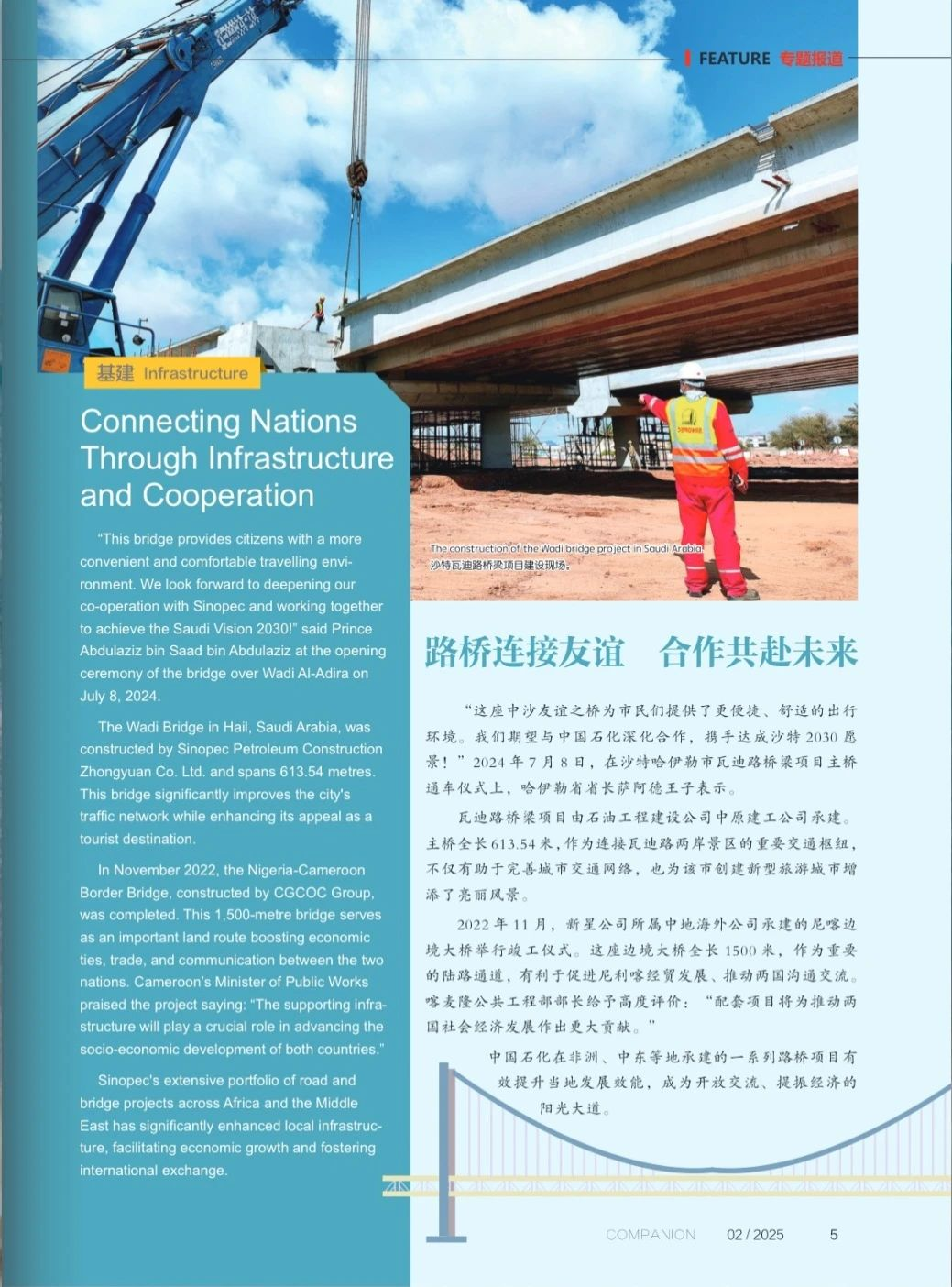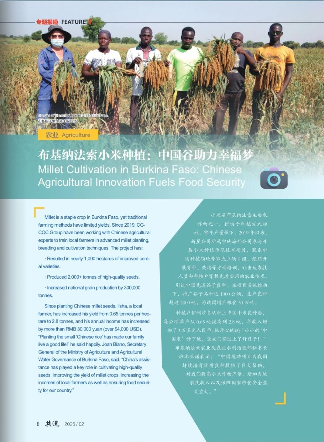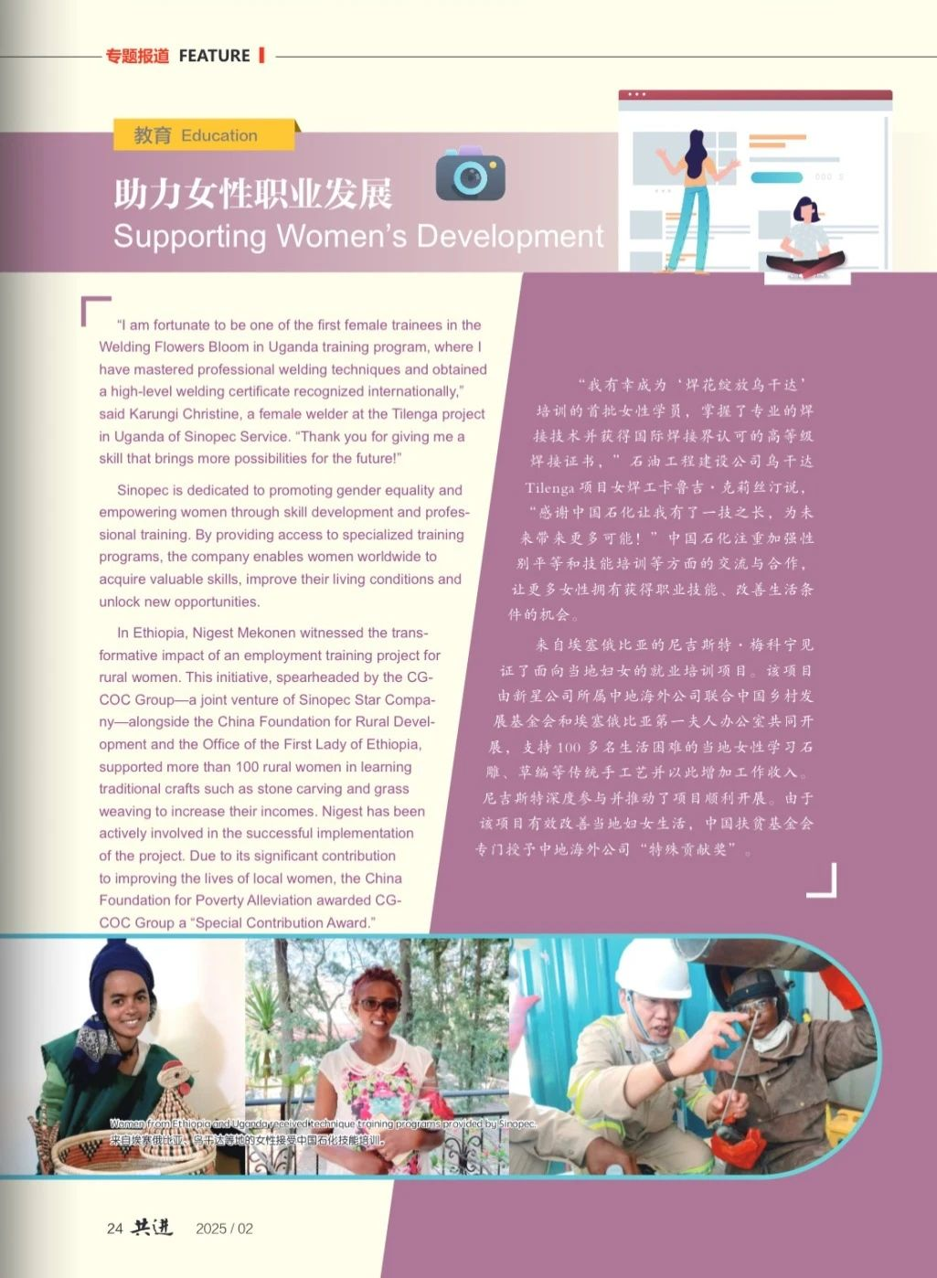 中國石化報社國際傳播雙語刊《共進》2月刊上線!本期重點聚焦中國石化在服務高水平對外開放過程中實施的一系列“小而美”項目。項目覆蓋多個國家,涉及眾多領域,其中由中地海外公司實施的包括:尼喀邊境大橋項目,增進了兩國的友好關系和商業發展;塞內加爾鄉村打井供水基礎設施工程,為當地居民解決了用水難題;布基納法索小米種植示范技術項目、尼日利亞農業技術培訓項目,為當地農業發展注入了新的活力;聯合中國鄉村發展基金會和埃塞俄比亞第一夫人辦公室共同開展的婦女就業培訓項目,助力當地婦女實現就業與自我價值。