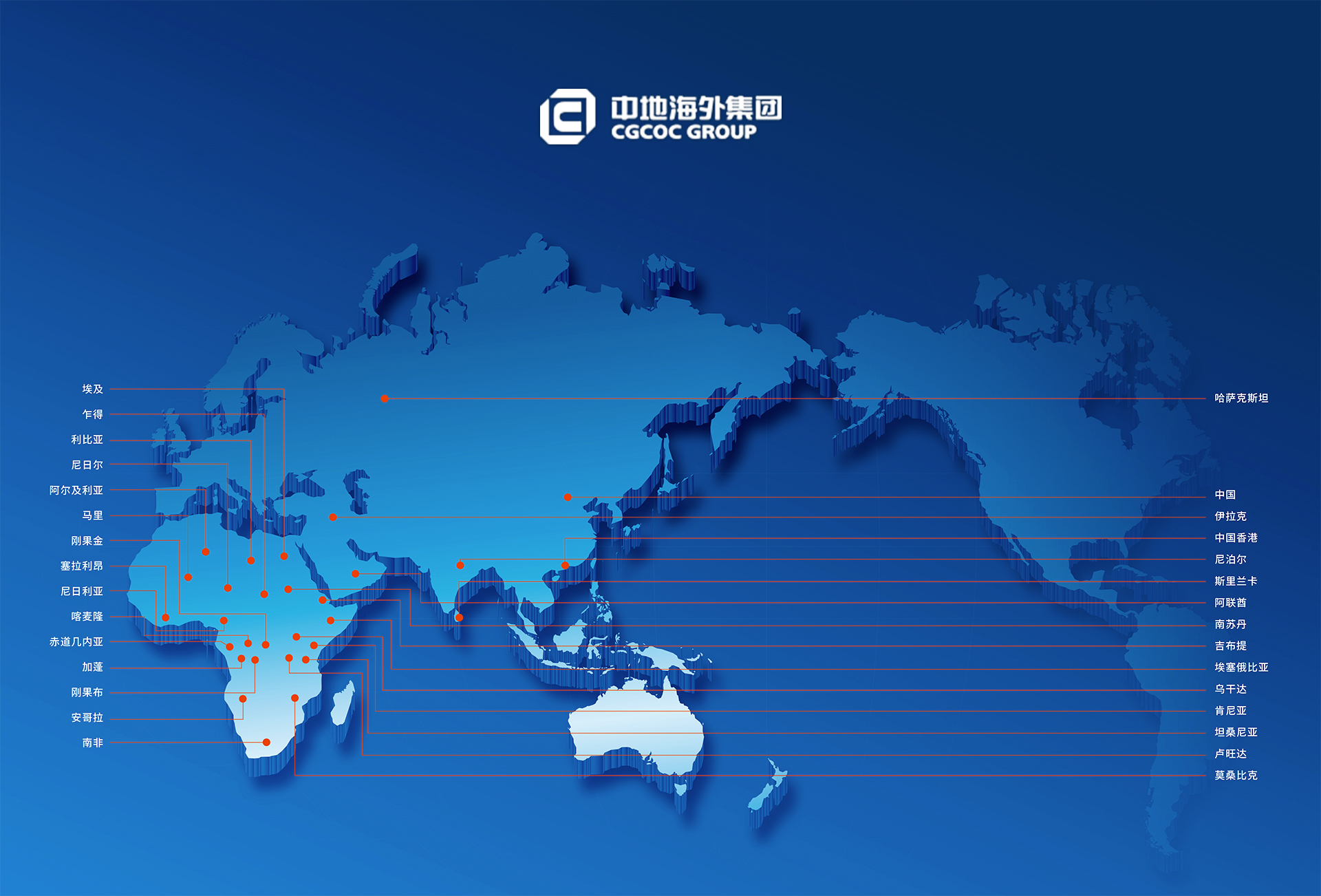 1983年原中國地質礦產部執行非洲尼曰利亞援外打井項目,后期在項目組基礎上成立中國地質工程尼日利亞公司,中地海外雛形自此誕生。2002年12月,為進一步開展對非工程合作和能源開發,中國石化集團新星石油有限公司與中國地質工程集團有限公司,以尼日利亞公司為業務基礎成立中地海外建設有限責任公司,總部設在北京。隨著多元股份加入,成立中地海外集團有限公司。公司自成立以來,堅持面向海外市場,開展屬地化經營,目前主要在非洲國家和部分亞洲國家開展業務,屬地化員工一萬余人,業務涵蓋基礎設施建設、投資運營、物流貿易等多個領域。共執行世界銀行、非洲發展銀行、當地政府資金、中國資金等各類項目共700余個,為所在國經濟發展和中國技術、服務、產品走出去做出了貢獻,獲得社會各界的贊譽。