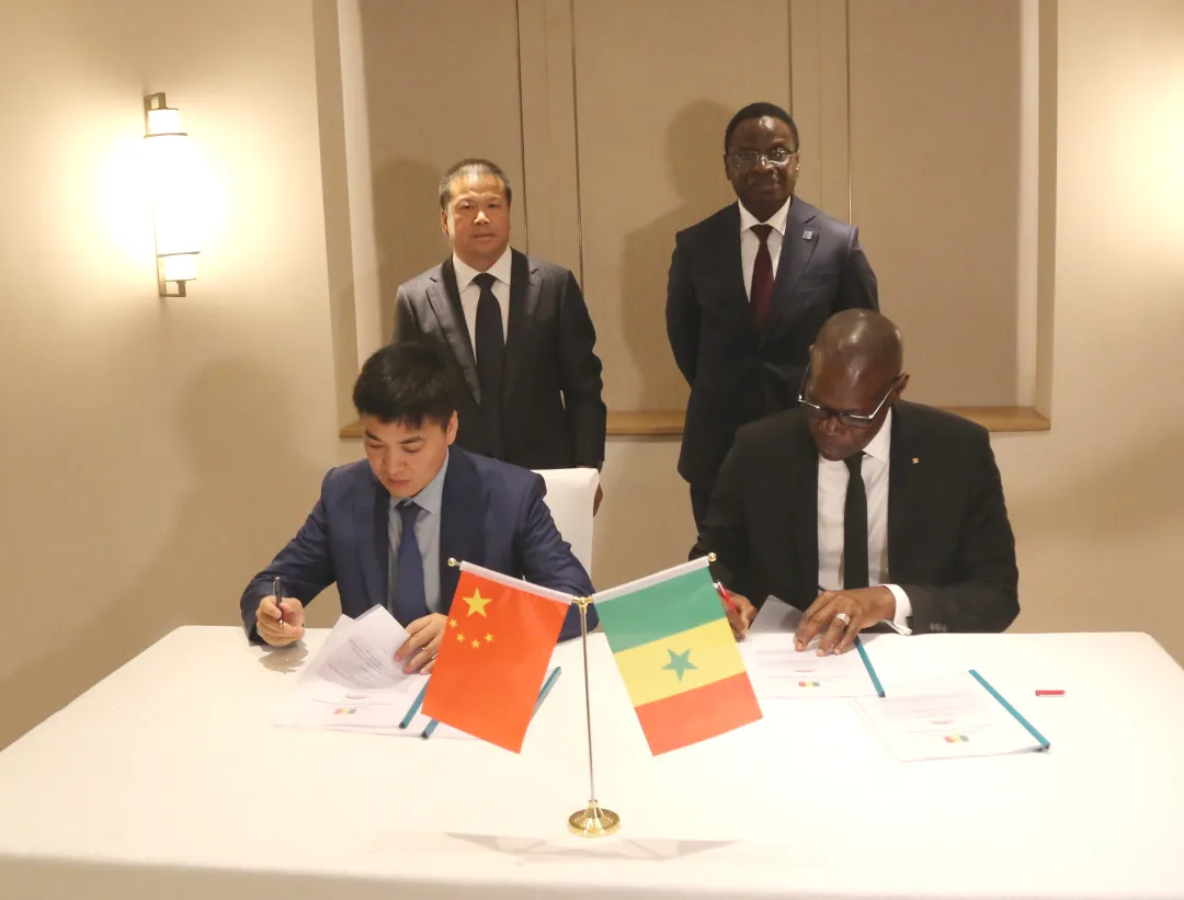 會(huì)后,在塞內(nèi)加爾工業(yè)和貿(mào)易部部長(zhǎng)塞里涅·蓋耶·迪奧普和蘭眉中董事長(zhǎng)的見(jiàn)證下,塞內(nèi)加爾工業(yè)局局長(zhǎng)阿馬杜·蓋伊和中地海外塞內(nèi)加爾公司總經(jīng)理康躍共同簽署了三個(gè)工業(yè)園項(xiàng)目的合作備忘錄。